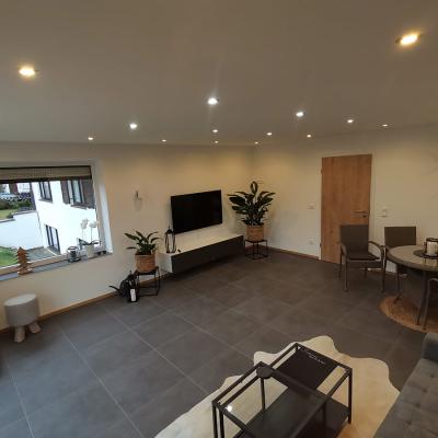 Auf 125m² Gesamtfläche finden in unserer Gartenwohnung bis zu 8 Personen Platz, die Wohnung ist über 2 Etagen durch eine großzügige Treppe verbunden.